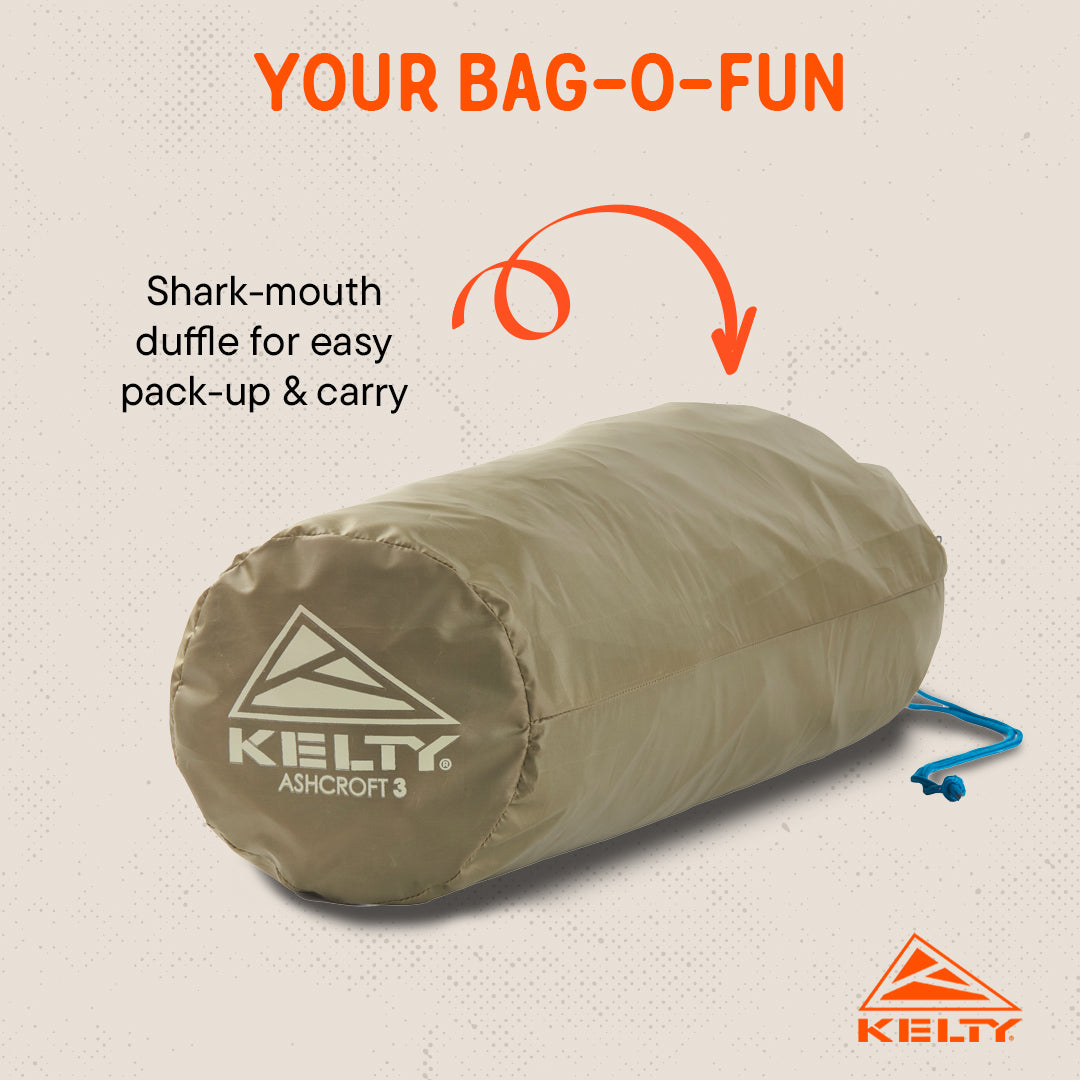 For your next backpacking adventure, the Ashcroft 3 Tent is the perfect traveling companion. Built for the elements, this tent includes a full coverage rain fly and taped seams, plus the fly features a vent to increase airflow on those humid nights. A free-standing, dome design with Quick Corners allows for fast, easy setup once you arrive, and pre-attached guylines help stabilize the tent in windy conditions.