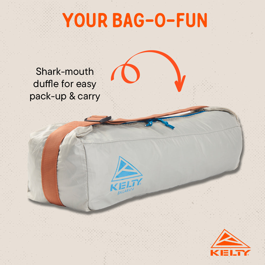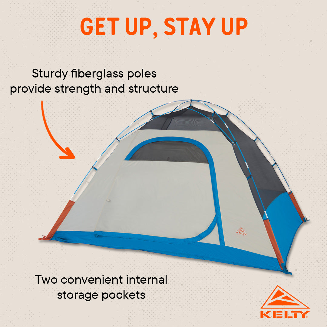 Your basecamp for adventure, the Kelty Ballarat 4 Tent delivers freestanding shelter quickly and easily, wherever you choose to set up camp. Designed to set up fast with Quick Corners, this 3-season tent features X tent pole design and a large D-door for ease-of access into your home away from home. Stay dry with partial coverage rainfly and keep accessory gear organized with internal storage pockets. Easy-to-use, pre-attached guylines help stabilize the tent in windy conditions.