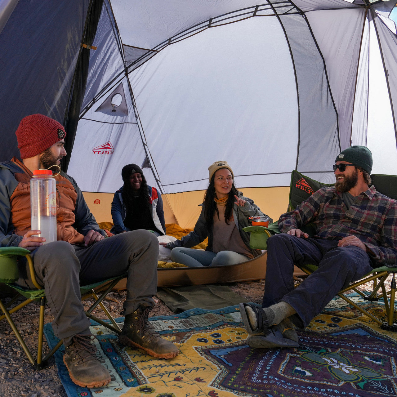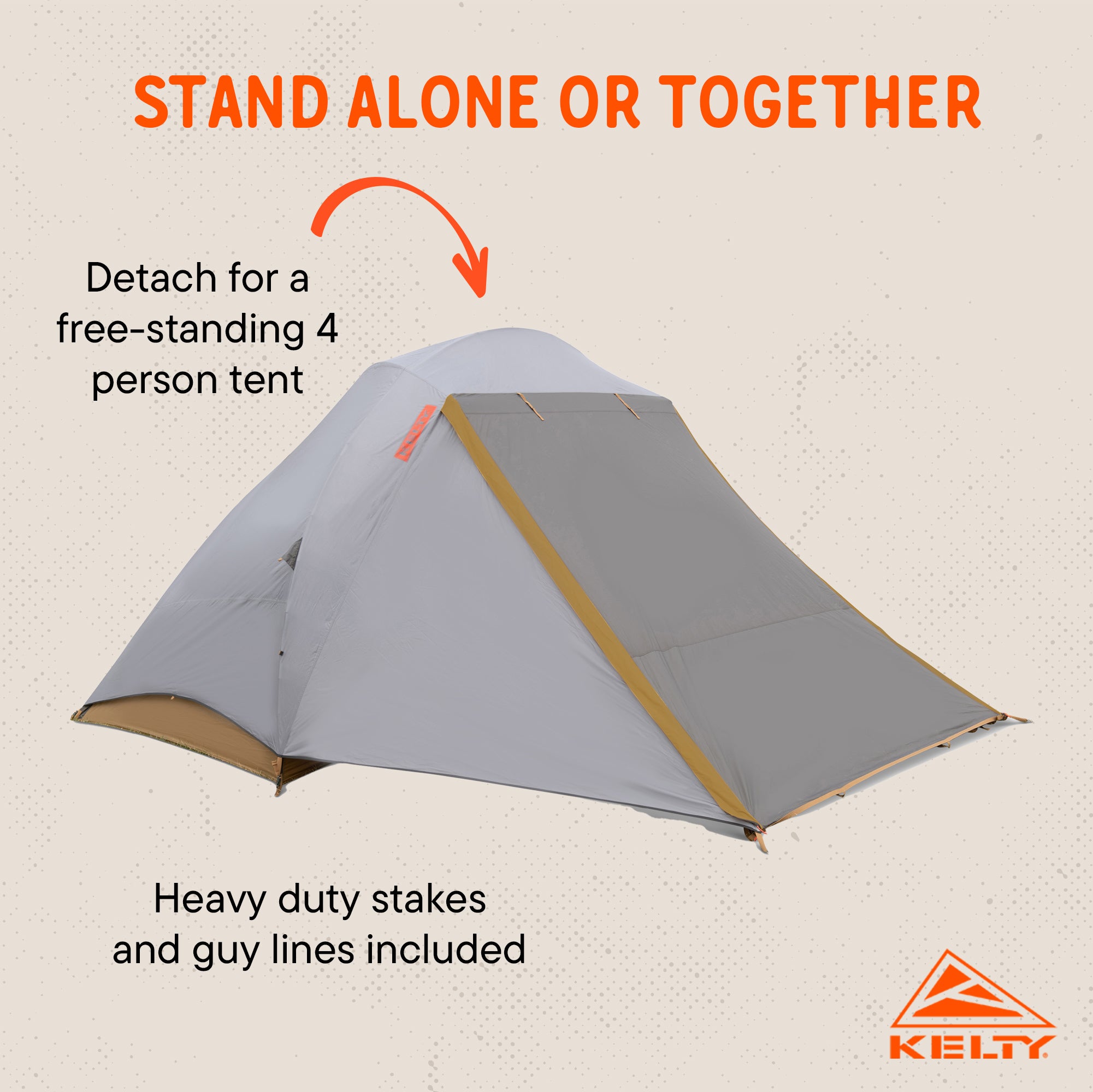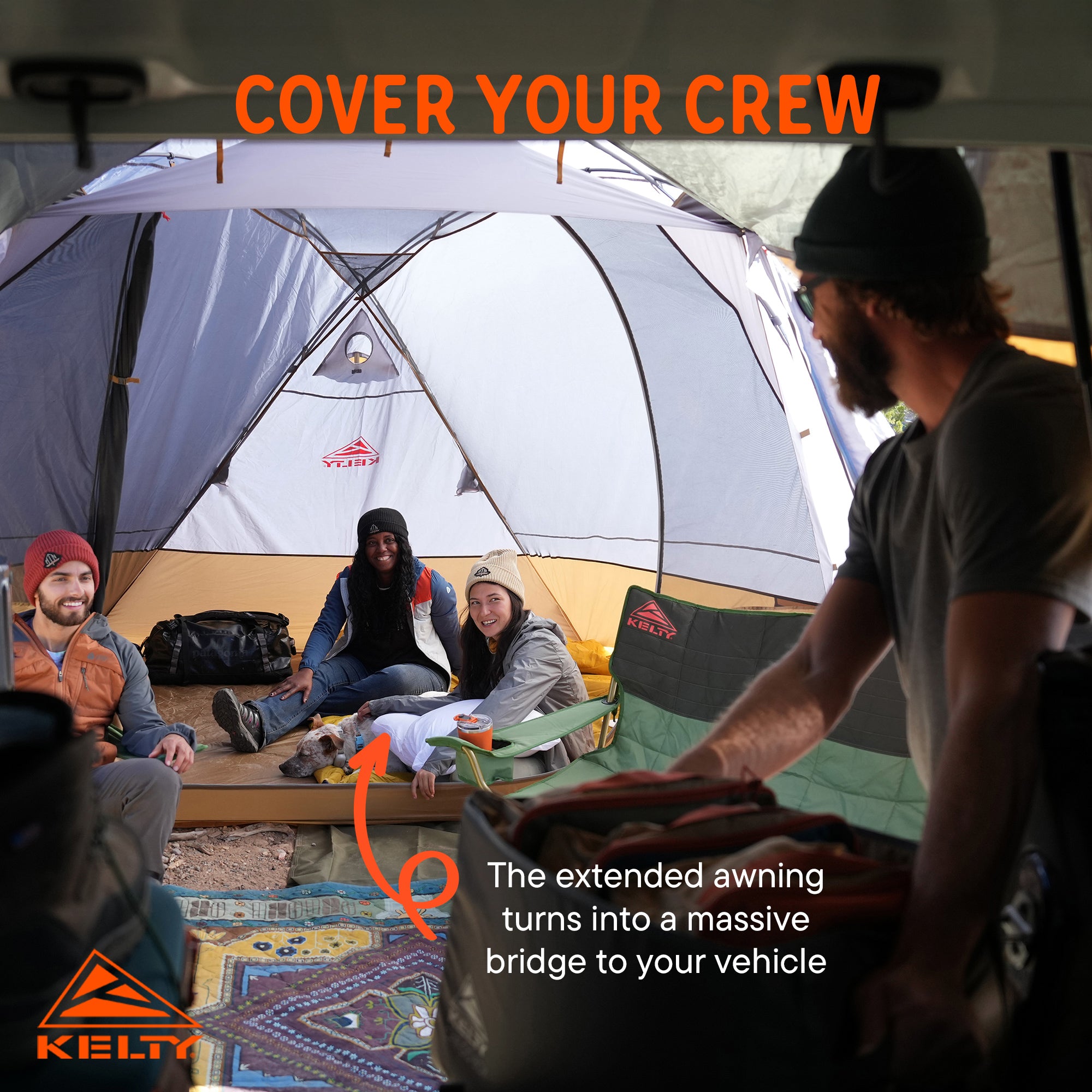 We’ve all been there: it’s 28 degrees at 3:15 a.m. Your boots are by the fire pit...your pants are...somewhere...and your toastiest extra layer is in the car. That’s exactly why we cooked-up the Caboose: the brilliant hybrid shelter that invites your vehicle (and all of its tempting contents) to the party. Just attach the extended awning to your open hatch, and you’ve got a free-standing tent with an extra rumpus room on wheels! Kelty Quick-Corners make setup a breeze, and a Shark-Mouth duffle lets you hit the road in record time. And did we mention, the extended awning turns into a massive vestibule when not connected to your car. Not too shabby.