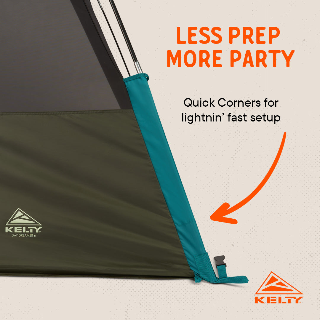 Easy and intuitive set up and break down with Kelty Quick Corner technology
