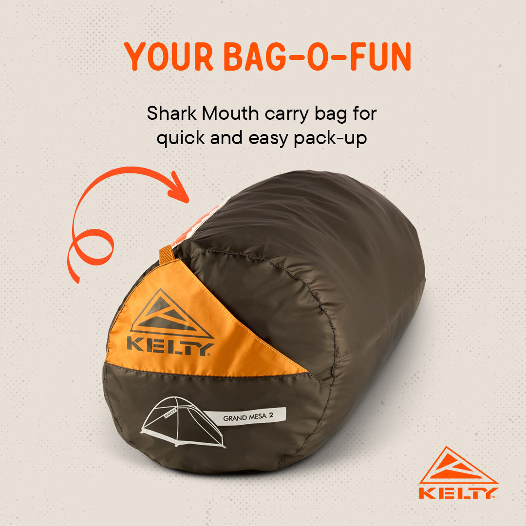 A reliable backpacking companion for decades, the Grand Mesa 2 is now even grander—with Kelty Quick Corners for lightnin'-fast setup, a Shark Mouth carry bag for easy pack-up and EZ Zip vestibule for smooth sailing in between. Lightweight aluminum poles make assembly a breeze. Easy, affordable and awesome…like your favorite freeze-dried meal. Without the heartburn.