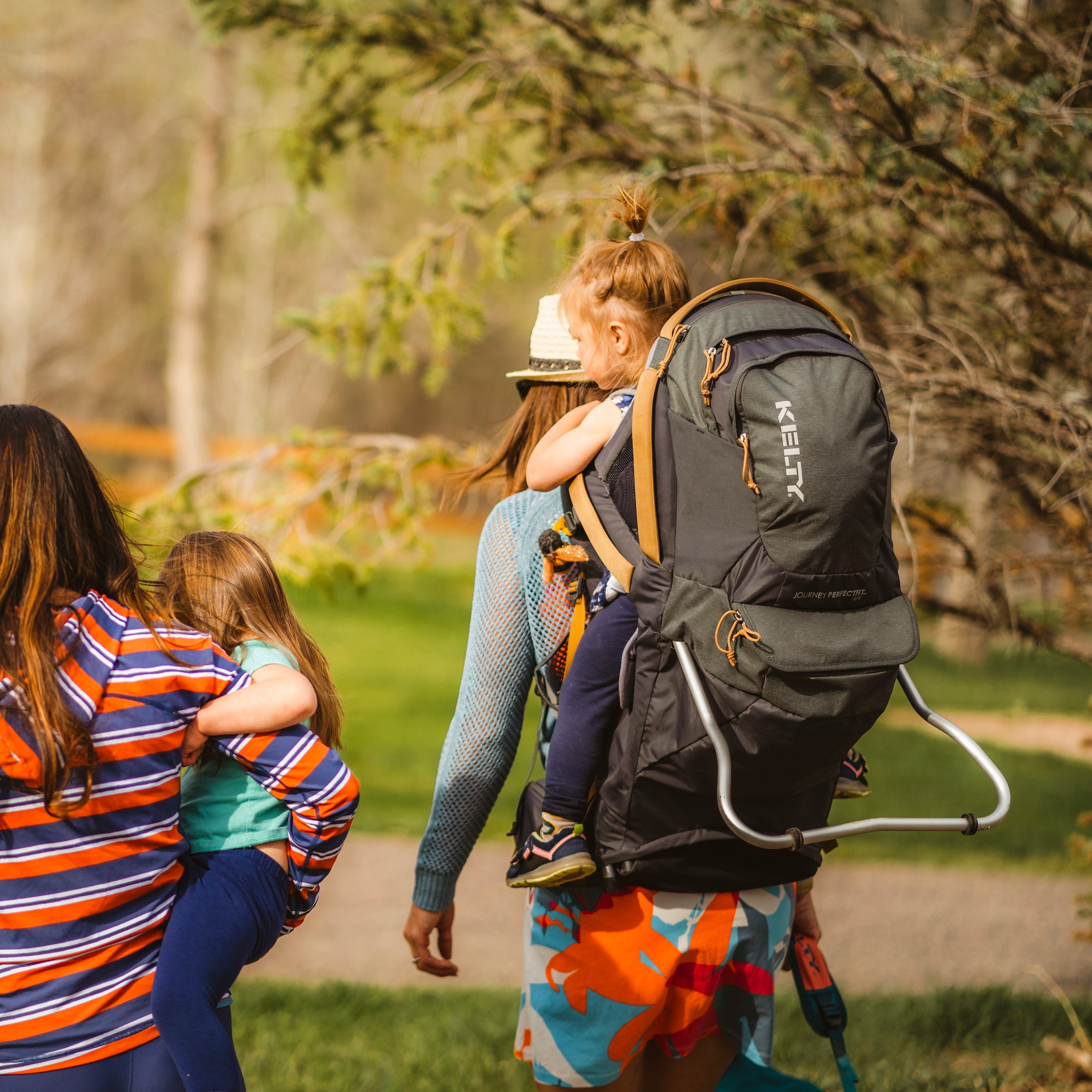 • Kelty’s PerfectFIT™ Suspension System easily adjusts to fit both mom and dad so you can both comfortably share the load