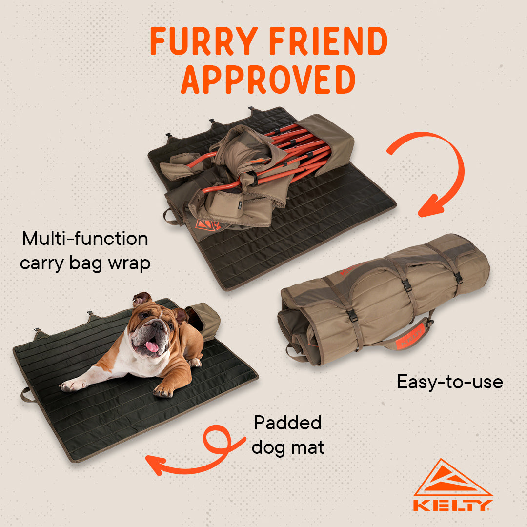 Easy-to-use carry wrap hauls extra gear and doubles as a padded dog mat