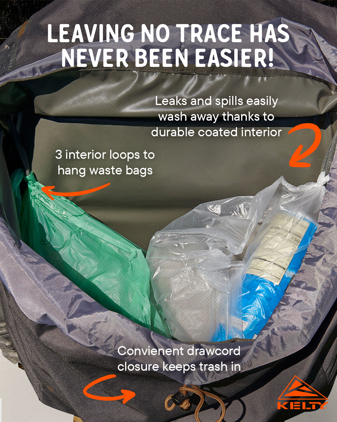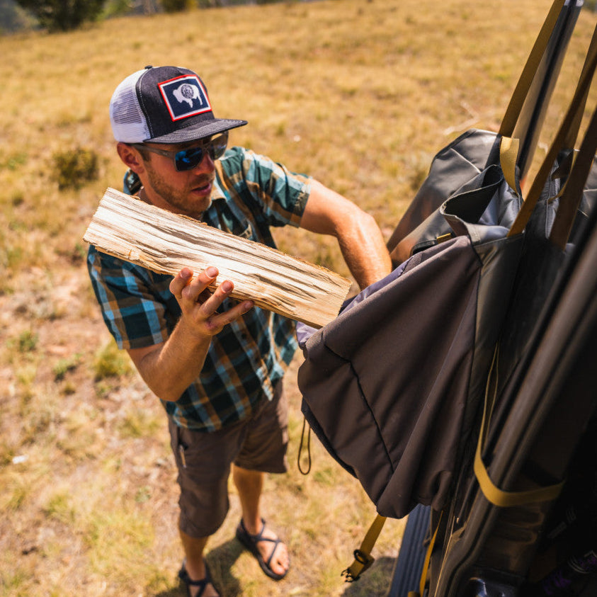 How does it work? Use the interior loops to tie in your trash and recycling bags, or toss it all in and sort it out at home. At camp, use the Trash Pak to manage waste and keep things clean. When it's time to head out, leave your campsite cleaner than you found it and keep the mess, leaks, and smells outside of the car. Simply rinse it out at home and you're ready for the next adventure. Pro tip: free up space and keep your trunk clean by using the Trash Pak to haul firewood into camp.