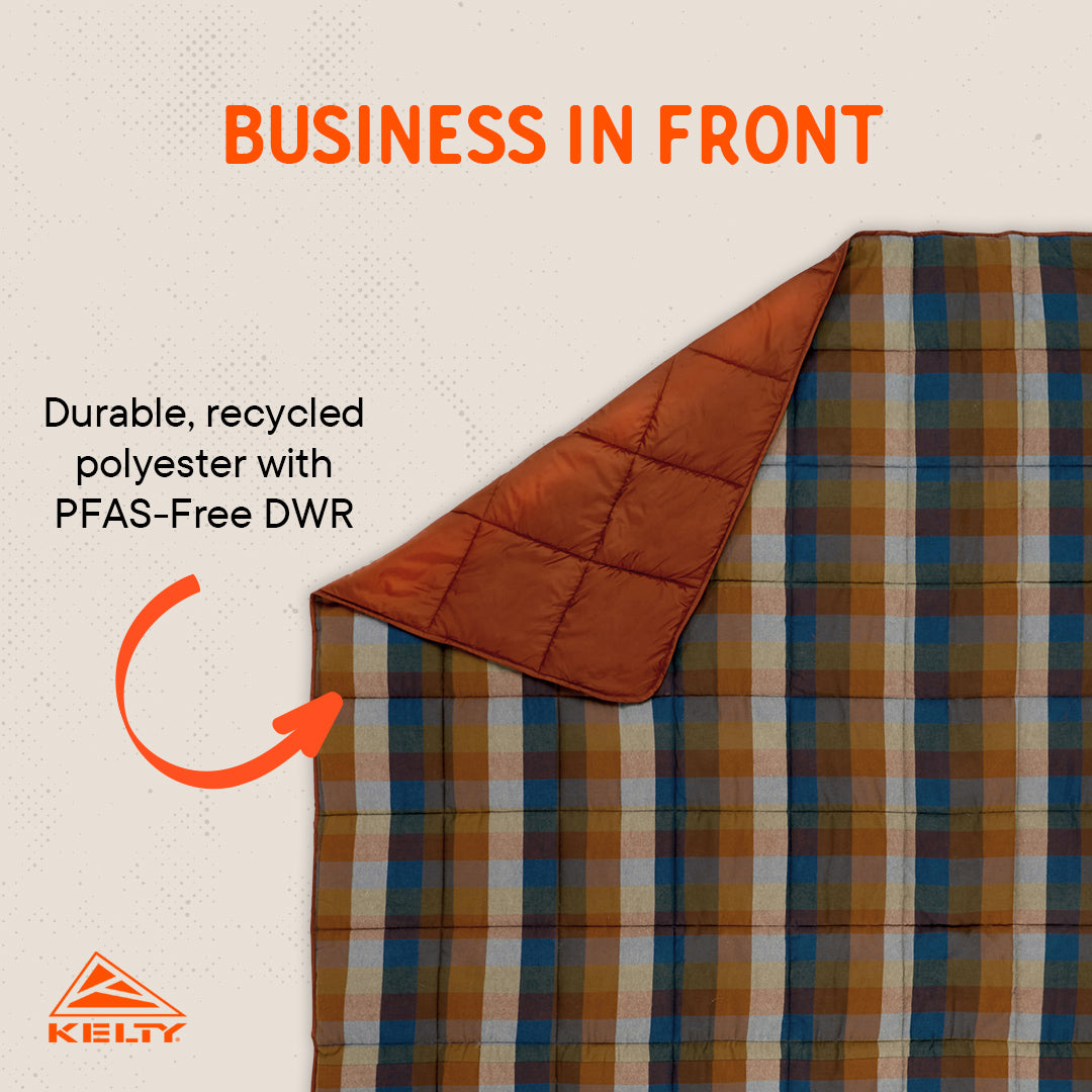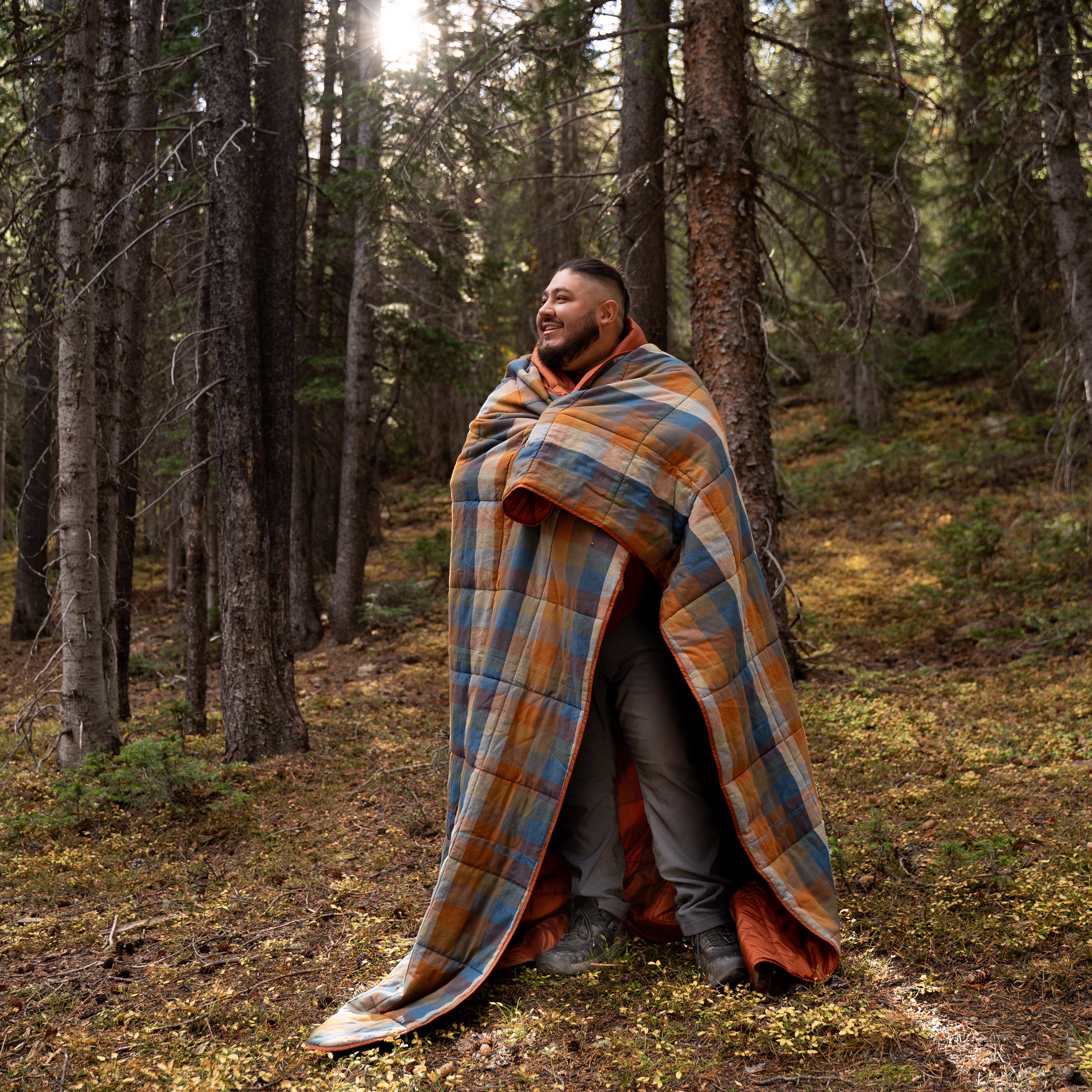 The happiest campers use our biggest, bestest blanket: the Wayback Biggie! Oversized for cozy solos or campsite cuddlers, the Wayback Biggie is truly the best of ALL worlds: durable, recycled nylon ripstop on one side, the softest organic cotton flannel on the other, and warm recycled CloudLoft ECO insulation in between. Wrap up for campfire sing-alongs, throw down for an impromptu picnic or tuck in for that decadent flannel-sheets feeling.