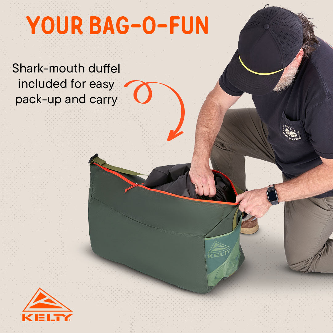 Shark Mouth duffel for easy pack-up and cross-body transport