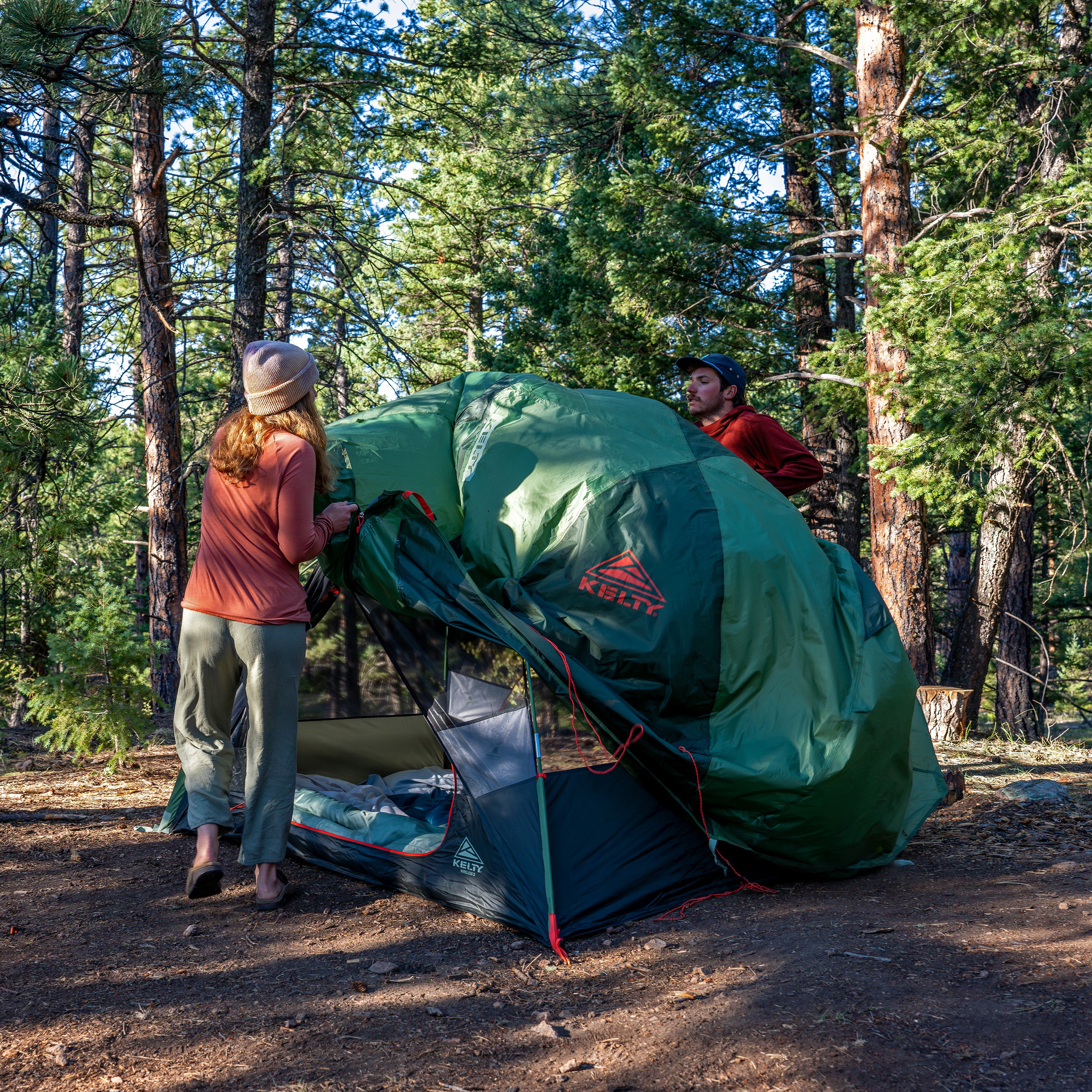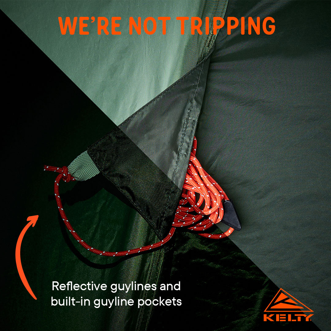 Reflective guylines and built-in guyline pockets
